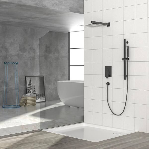 Aca 2-Spray Patterns with 1.8 GPM 10 in. Wall Mount Dual Shower Heads in Black