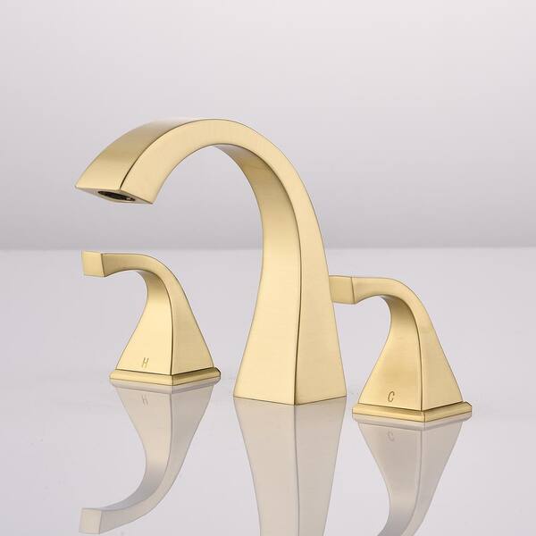 Ami 8 in Widespread 3 Holes 2 Handles Desk mounted Bathroom Faucet with Pop Up drain in Brushed Gold