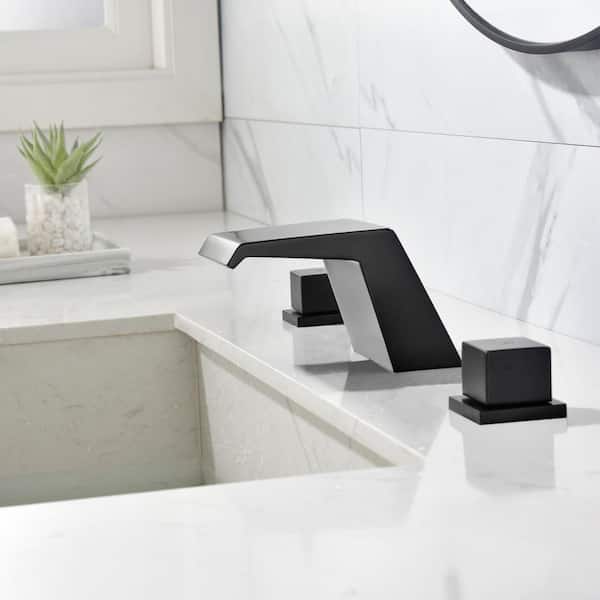 Lilac 3 Hole 2-Handle Waterfall Bathroom Faucet in Matte Black