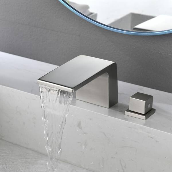Pome 8 in. Widespread 3 Hole 2-Handle Low-Arc Bathroom Faucet in Brushed Nickel