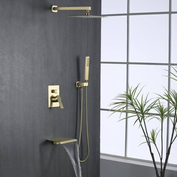 Pomelo Single-Handle 3-Spray Shower Faucet with 12 in. Wall Mount Shower Head in Brushed Gold (Valve Included)