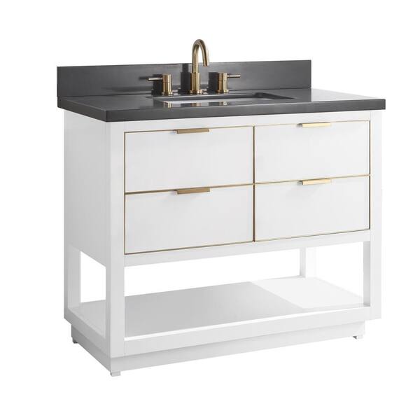 Allie 43 in. Single Sink White with Gold Trim Bath Vanity with Gray Quartz Top