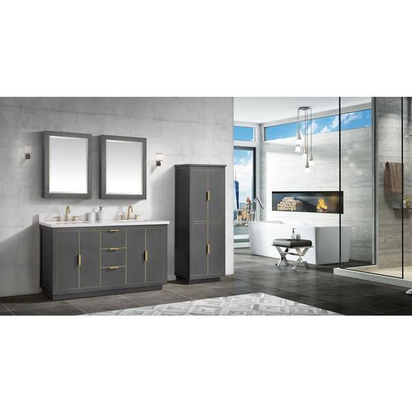 Austen 61 in. W x 22 in. D Bath Vanity in Gray with Gold Trim with Quartz Vanity Top in White with Basins