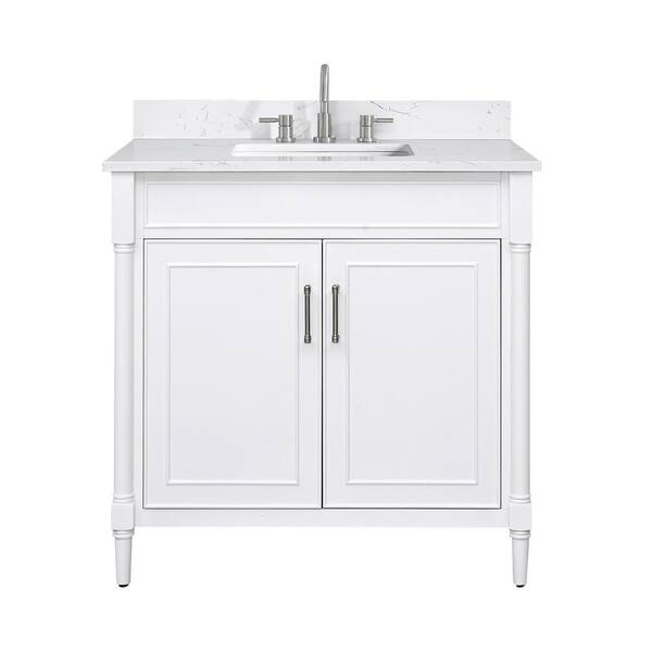 Bristol 37 in. Single Sink White Bath Vanity with Cala White Engineered Stone Top