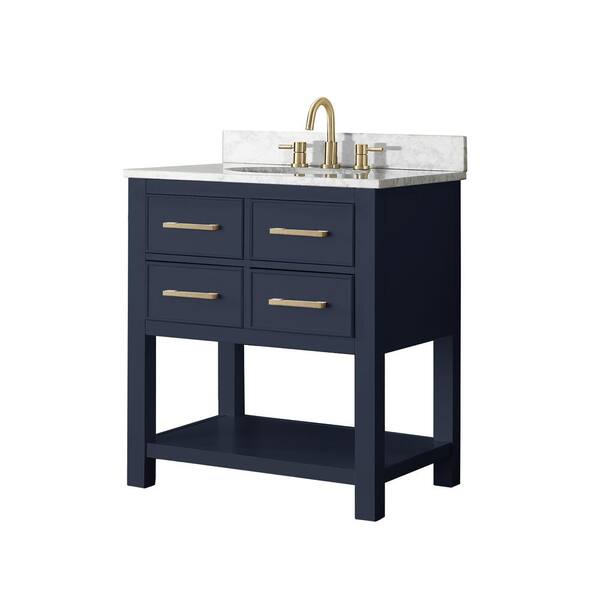 Brooks 31 in. Single Sink Navy Blue Bath Vanity with Carrara White Marble Top