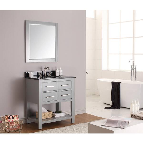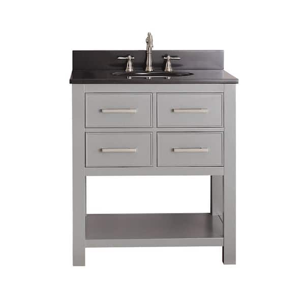 Brooks 31 in. W x 22 in. D x 35 in. H Vanity in Chilled Gray with Granite Vanity Top in Black and White Basin
