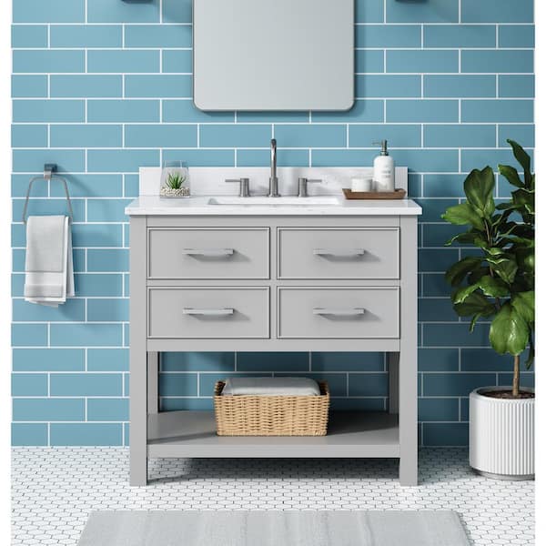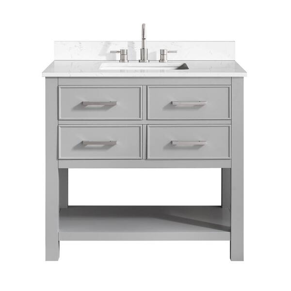 Brooks 37 in. Single Sink Chilled Gray Bath Vanity with Cala White Engineered Stone Top