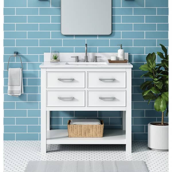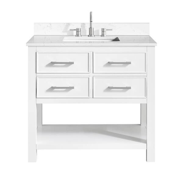 Brooks 37 in. Single Sink White Bath Vanity with Cala White Engineered Stone Top