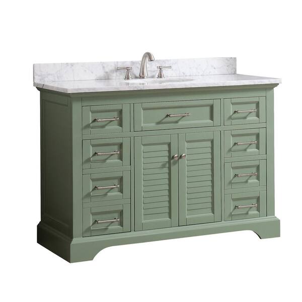 Colton 49 in. W x 22 in. D x 35 in. H Bath Vanity in Basil Green with Marble Vanity Top in Carrara White with Basin