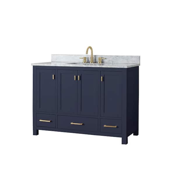 Modero 49 in. Single Sink Navy Blue Bath Vanity with Carrara White Marble Top