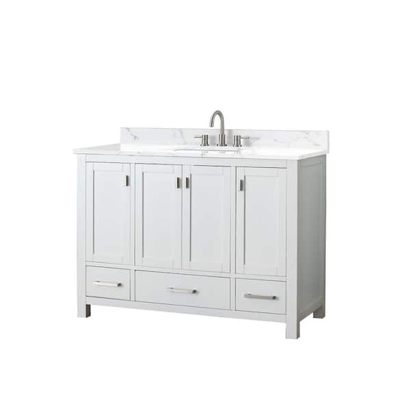 Modero 49 in. Single Sink White Bath Vanity with Cala White Engineered Stone Top