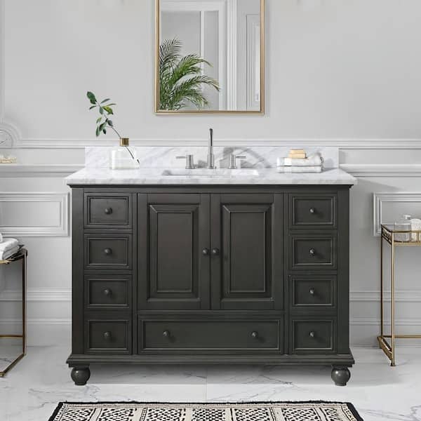 Thompson 49 in. Single Sink Charcoal Glaze Bath Vanity with Carrara White Marble Top