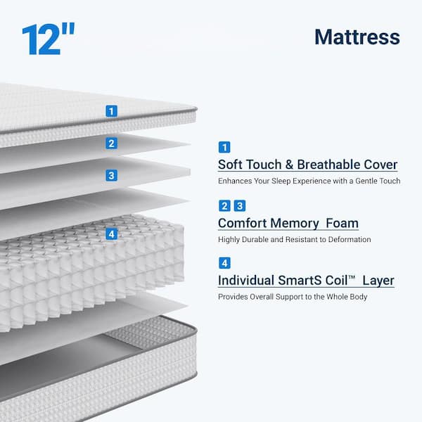 Queen Medium Firm Hybrid 12 in. Mattresses, Motion Isolation and Breathable