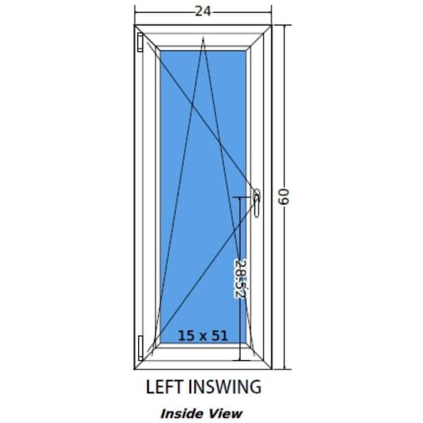24 in. x 60 in. Elite Euro White Double-Pane Vinyl Tilt/Turn Window with Screen and Left Inward Swing