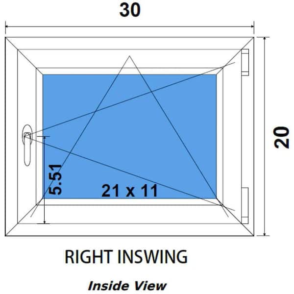 30 in. x 20 in. Elite Euro White Double-Pane Vinyl Tilt/Turn Window with Screen and Right Inward Swing