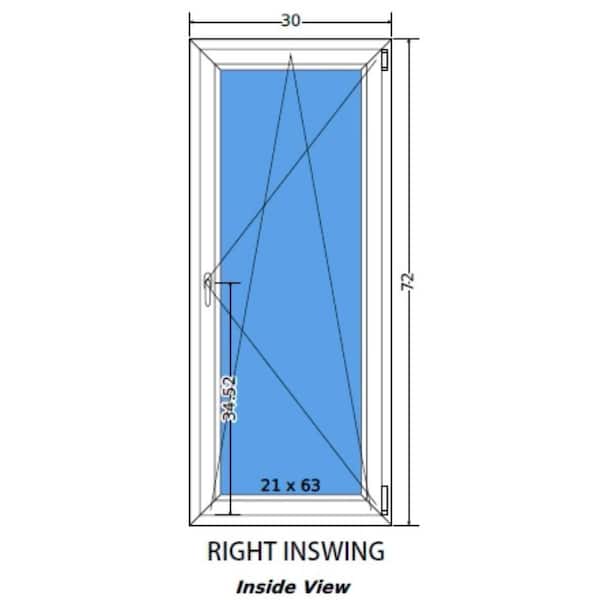 30 in. x 72 in. Elite Euro White Double-Pane Vinyl Tilt/Turn Window with Screen and Right Inward Swing