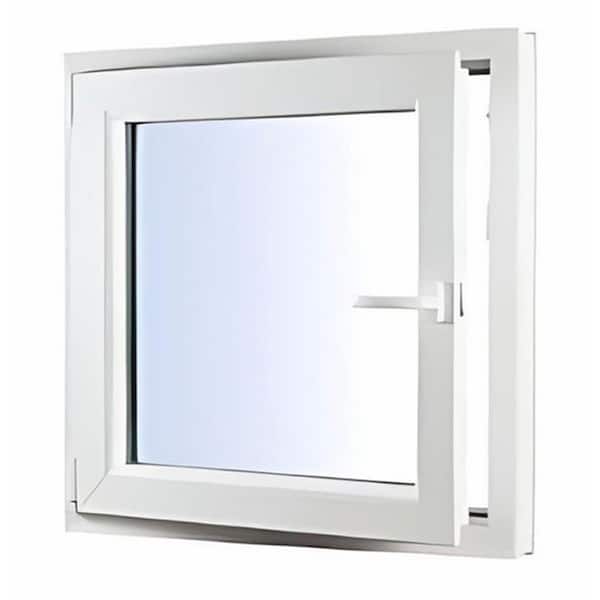 36 in. x 36 in. Elite Euro Black Exterior White Interior Double-Pane Vinyl Tilt/Turn Window with Screen, LH Inward Swing