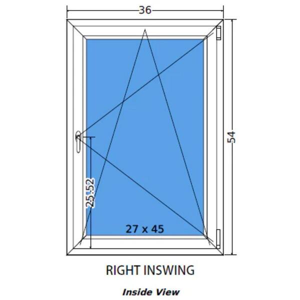 36 in. x 54 in. Elite Euro White Double-Pane Vinyl Tilt/Turn Window with Screen and Right Inward Swing