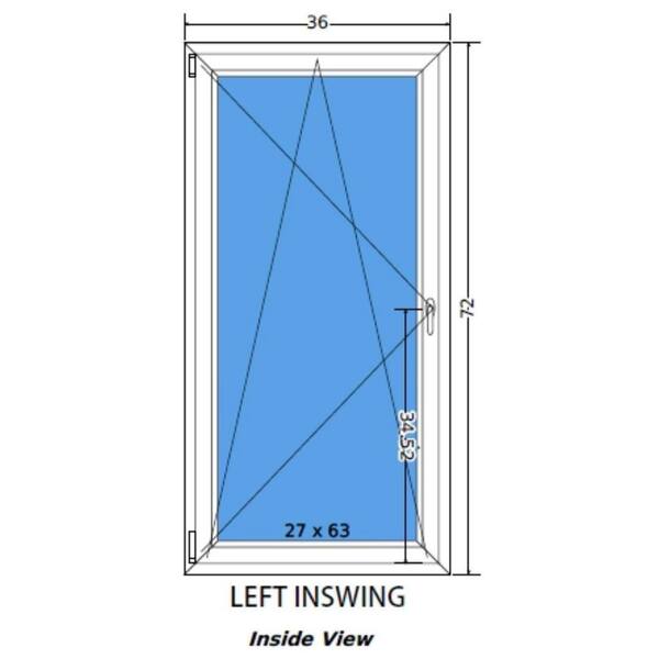 36 in. x 72 in. Elite Euro White Double-Pane Vinyl Tilt/Turn Window with Screen and Left Inward Swing