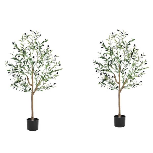4 ft. Artificial Olive Tree, Faux Olive Silk Tree for Indoor Home Decor and Housewarming Gift (Set of 2)