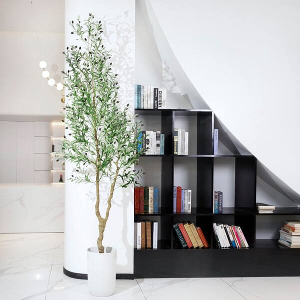 8 ft. Asymmetrical Dual-Trunk Artificial Olive Tree, Large Faux Olive Silk Tree with Varying Heights for Home Decor