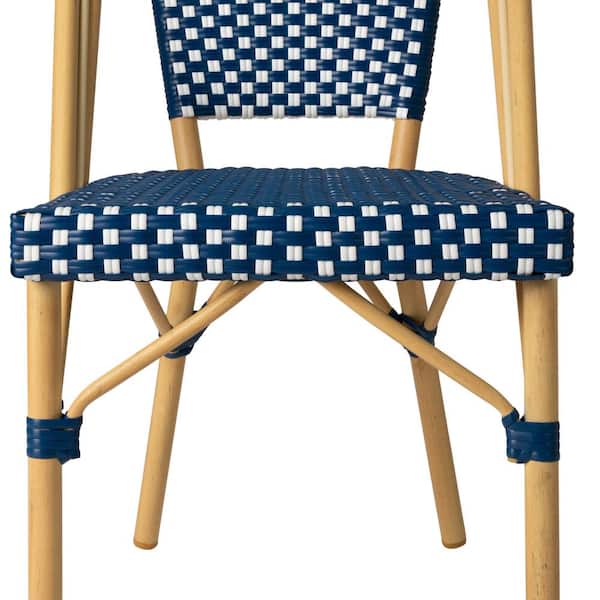 Arles French Bistro Wicker Aluminum Outdoor Dining Chair in Blue Set of 2