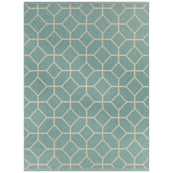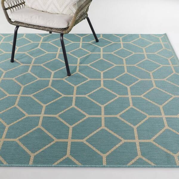 Bouvard Teal 5 ft. 3 in. x 7 ft. 5 in. Geometric Indoor/Outdoor Area Rug