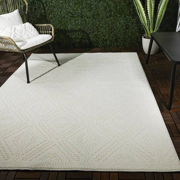 Davina Cream 5 ft. 3 in. x 7 ft. Geometric Indoor/Outdoor Area Rug