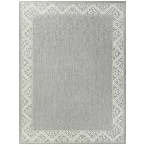 Hall Grey 8 ft. x 10 ft. Medallion Border Indoor/Outdoor Area Rug