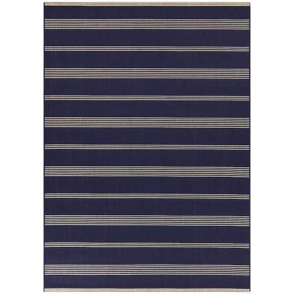 Horton Navy Blue 8 ft. x 10 ft. Stripe Indoor/Outdoor Area Rug