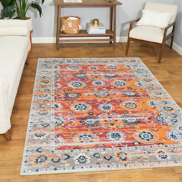 Lucae Orange 5 ft. x 7 ft. Distressed Oriental Area Rug