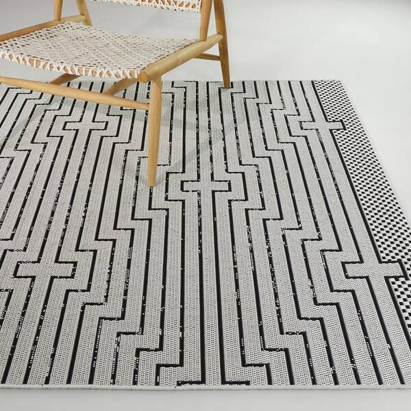 Ludmila Black 5 ft. 3 in. x 7 ft. 7 in. Abstract Indoor/Outdoor Area Rug