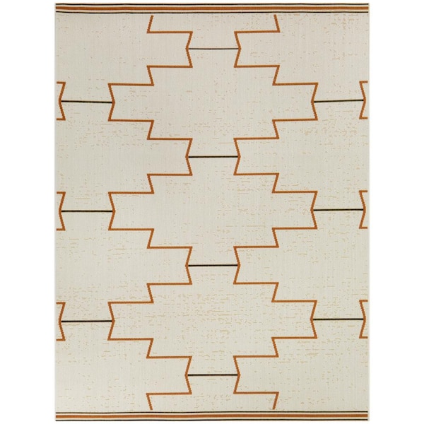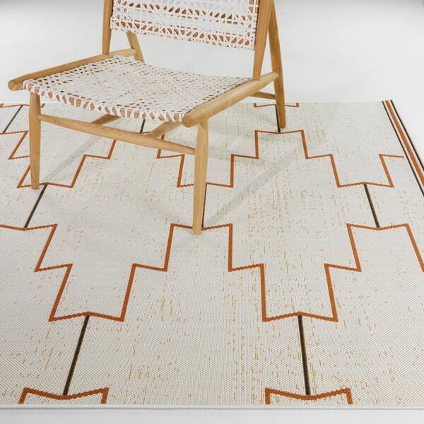 Mead Orange 5 ft. 3 in. x 7 ft. Geometric Indoor/Outdoor Area Rug