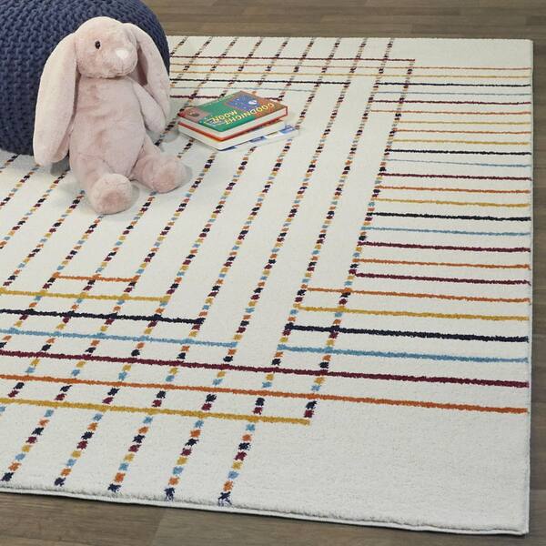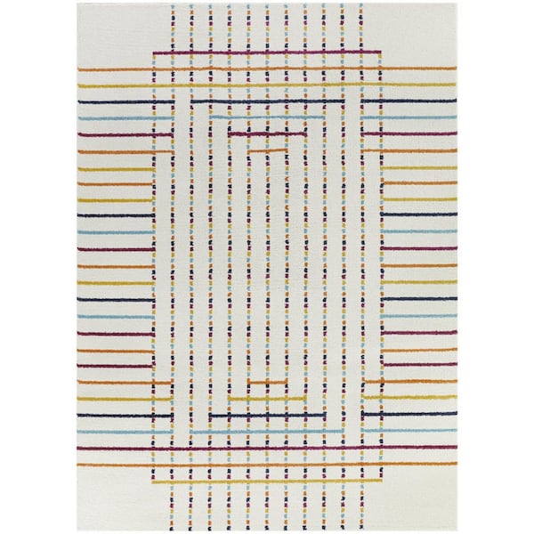 Modern White 5 ft. 3 in. x 7 ft. Striped Area Rug