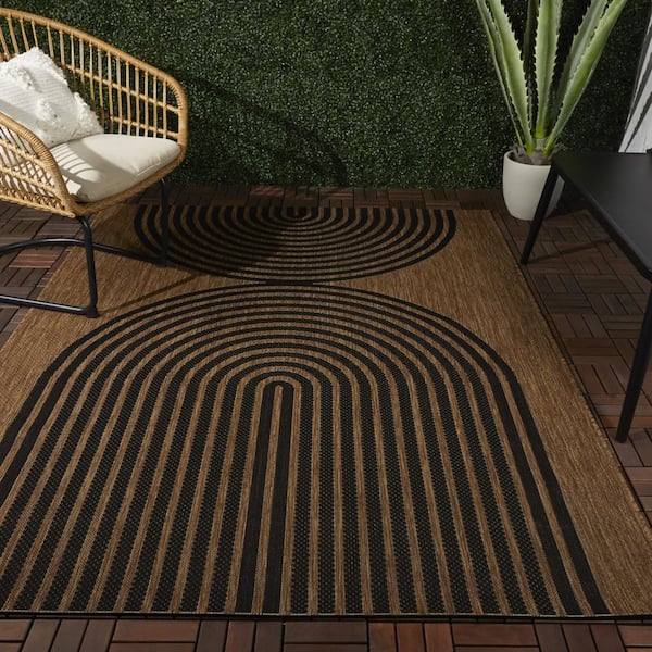 Niccolo Tan 7 ft. 10 in. x 10 ft. Stripe Indoor/Outdoor Area Rug