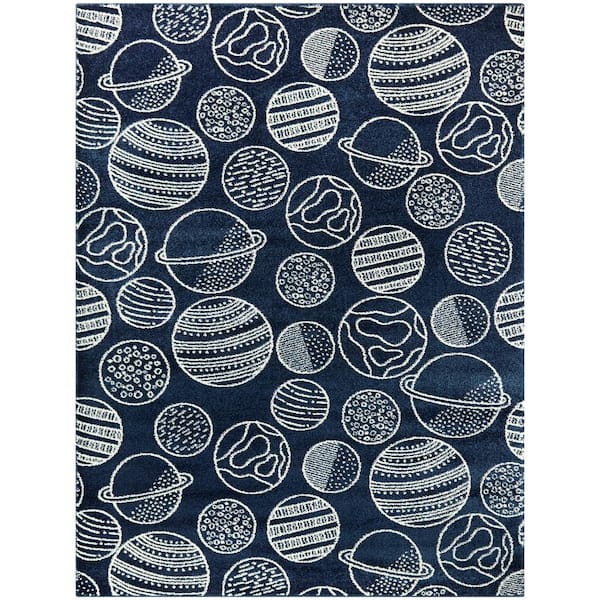 Space Planets Blue/White 8 ft. x 10 ft. Area Rug