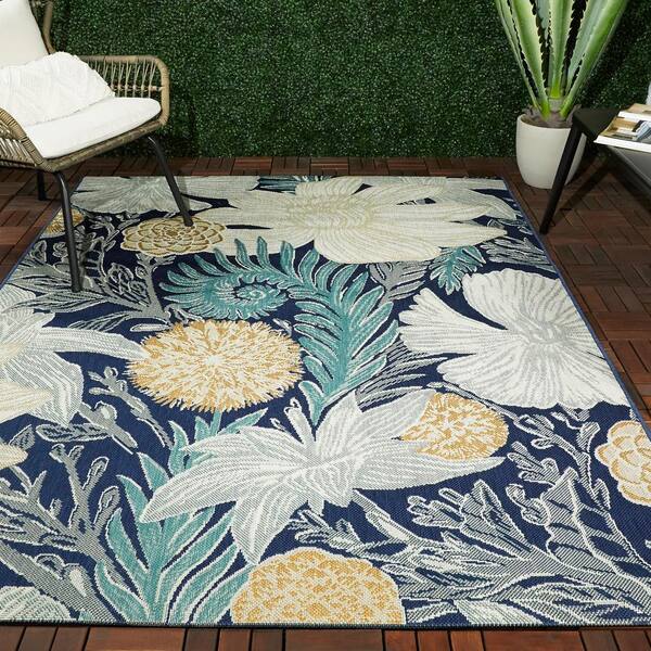 Tirel Blue 5 ft. 3 in. x 7 ft. Floral Indoor/Outdoor Area Rug