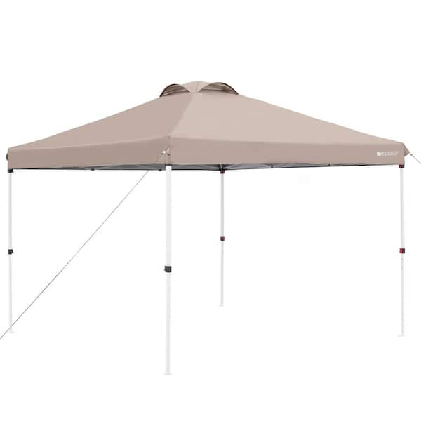 10 ft. x 10 ft. Brown Heavy Duty Rain Awning Pop-Up Canopy with Roller Bag, 4-Sandbagsand 8-Stakes, Height Adjustable