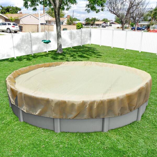 12 ft. Round Beige Above Ground Pool Winter Cover with 4 ft. Overlap, Swimming Pool Cover Protector Winter Safety Cover