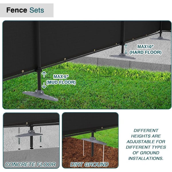 5 ft. x 24 ft. Black Balcony Privacy Fence Set with Poles and Rails Ground Spikes Fence Kit for Patio Garden Pool Yard