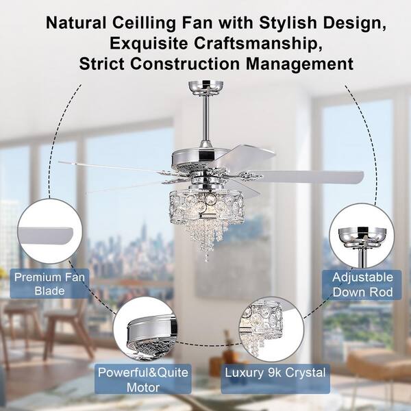 52 in. Indoor/Outdoor Chrome Crystal Chandelier Ceiling Fan with Light Kit and Remote Control
