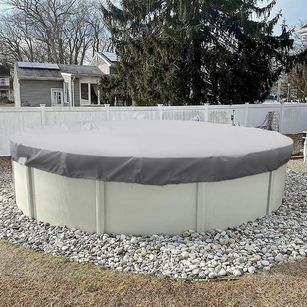 8 ft. Round Light Gray Above Ground Waterproof Pool Winter Cover, Swimming Pool Cover Protector