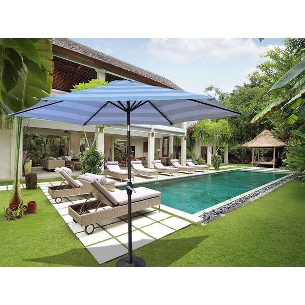 CoolSum 9 ft. Steel Push-Up Patio Umbrella in Ice Blue Stripe with Crank and Tilt, UV-Resistant