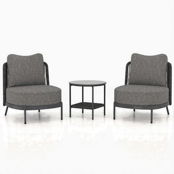 Dark Gray 3-Piece Aluminum Patio Conversation Set with Water-Resistant 6.25 in. Thick Cushions