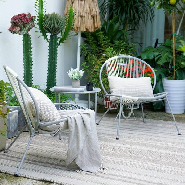 Grey 3-Piece Set Outdoor Shell Shape Wicker Patio Conversation Set