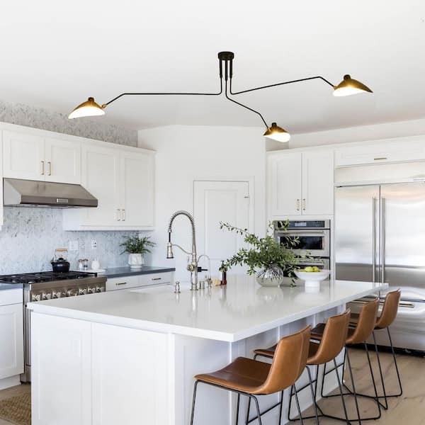3-Light Mid-Century Modern Black Chandelier Ceiling Light for Living Room with 3-Swing Arm and 360° Rotating Lampshade