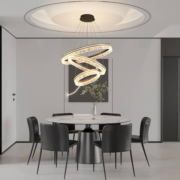 3 Lights Modern Integrated LED Chandelier Pendant Light, Grey Dimmable Chandelier with Remotet Adjustable Light Fixtures