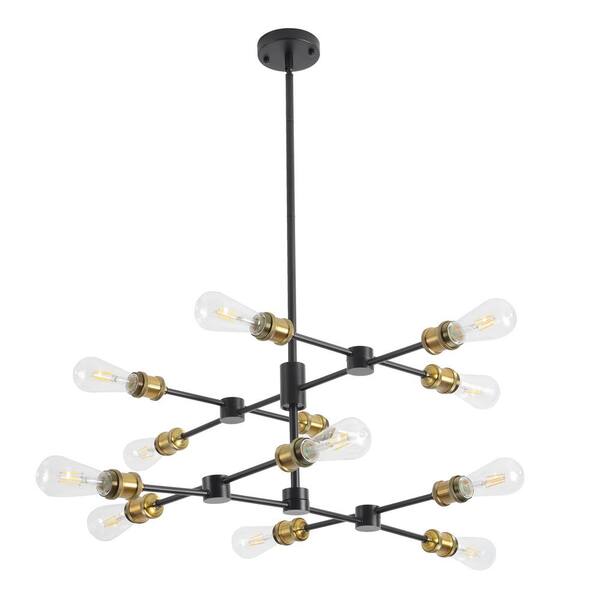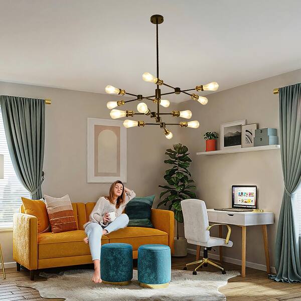 Black and Brass Chandelier, Mid Century Sputnik Pendant Light 12-Lights Chandeliers