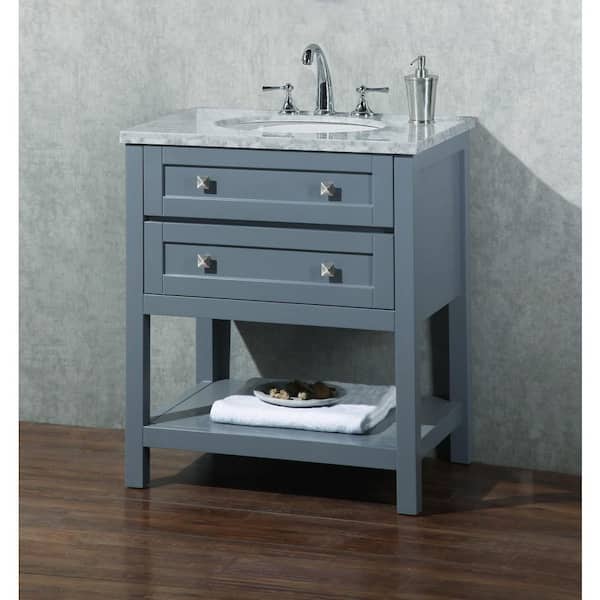30 in. W x 22 in. D x 34.5 in. H Single Freestanding Bath Vanity in Gray with White Carrara Marble Top