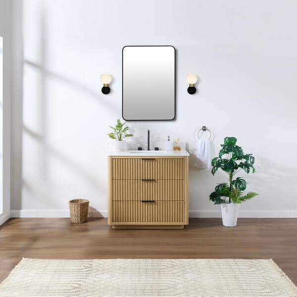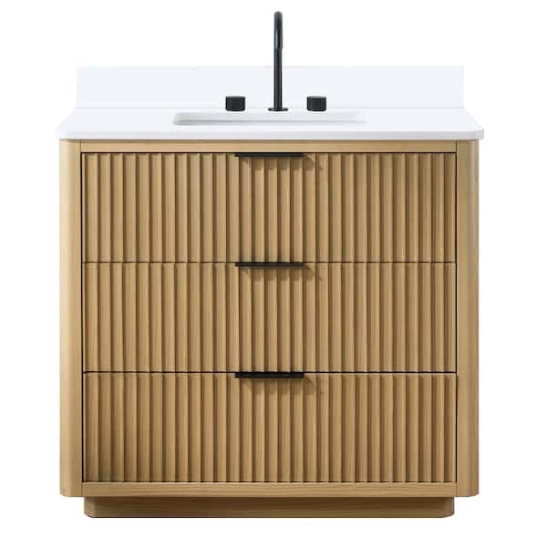 Evelyn 37 in. W x 22 in. D x 34.2 in. H Single Freestanding Bathroom Vanity in Nature Oak with Quartz Countertop